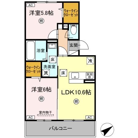 | 建物構造 | 軽量鉄骨 | 間取内容 | LDK10.6帖、洋室6.0帖、洋室5.8帖 |
